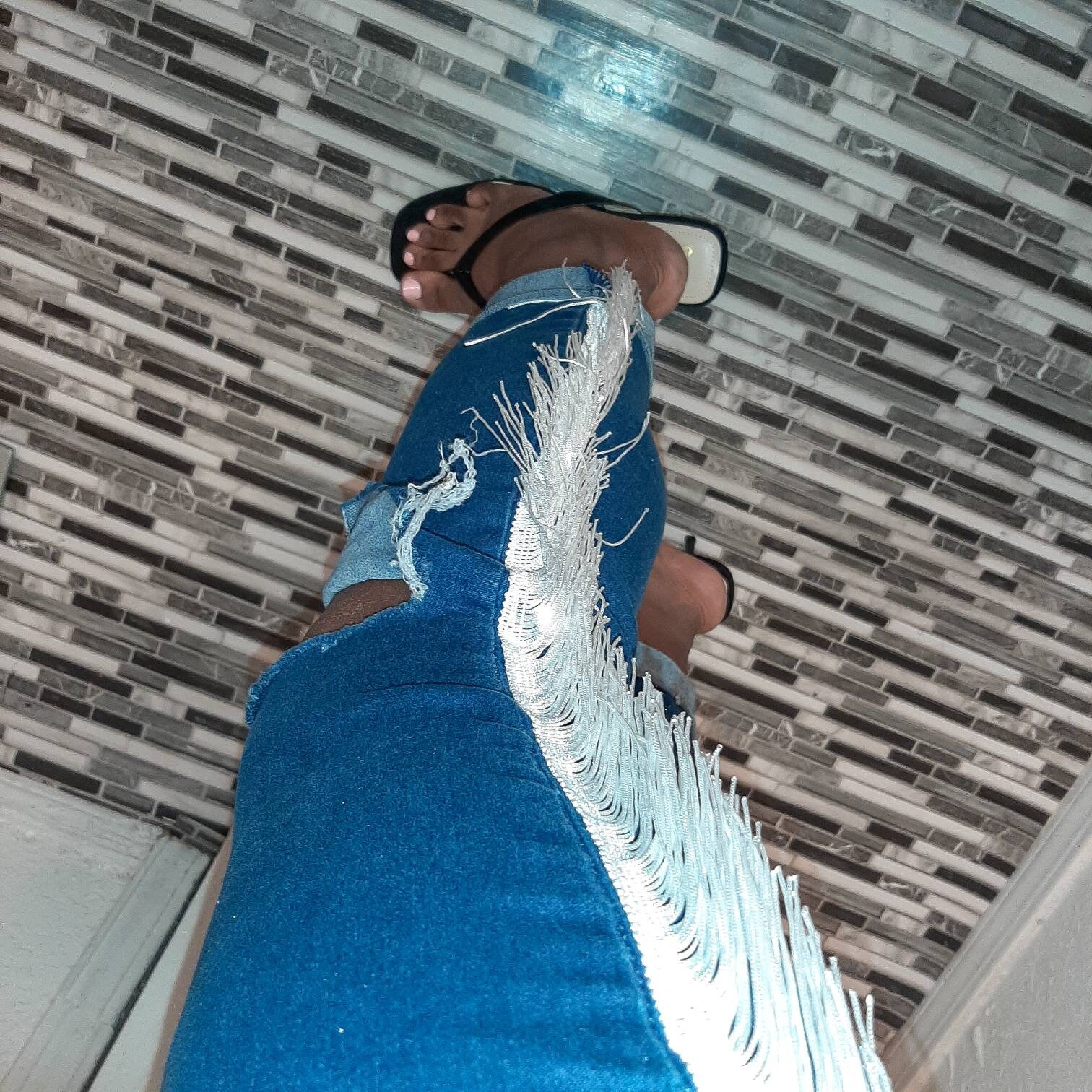 Female Stacked Blue Jeans Diy Stacked Jeans Diystackedjeans Stacked Denim Jean Outfits With Leggings Streetwear Fashion Women Stack Jeans Outfit Black Girl